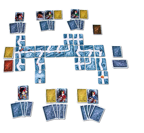 Состав игры: 110 карт базовой игры: 44 карты туннелей, 27 карт действия, 28 карт золотых самородков, 7 карт гномов Золотоискателей, 4 карты гномов Вредителей; 66 карт дополнения: 30 карт туннелей, 21 карта действия, 15 карт гномов (4 зелёных и 4 синих Золотоискателя, 1 Босс, 2 Геолога, 1 Делец и 3 Вредителя), 32 шестигранных жетона золота (ценностью 1, 2, 5), правила игры на русском языке, коробка.