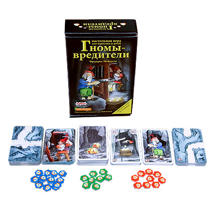 На первый взгляд, все гномы похожи: маленькие, бородатые, золото любят, упорно стучат своими кирками в подземных туннелях в поисках золотой жилы... Но не случайно же обрушился туннель, кто-то явно намеренно разбил лампу, подстроил ловушку, сломал инструменты... в шахте появились гномы-вредители! Игроки будут добывать золото в нелёгкой борьбе в течение трёх раундов, и всякий раз роли гномов будут распределяться заново, так что вредителем сможет побывать каждый золотоискатель. Игра полна интриг и даже коварства, она не на шутку захватывает участников. Несложные правила, быстрая партия, возможность играть большой компанией и, главное, дополнение к игре Saboteur 2 в комплекте! А это значит: специальные персонажи, дополнительные карты туннелей, новый простор для хитрых планов, возможность играть командами и пригласить в игру до 12 друзей!